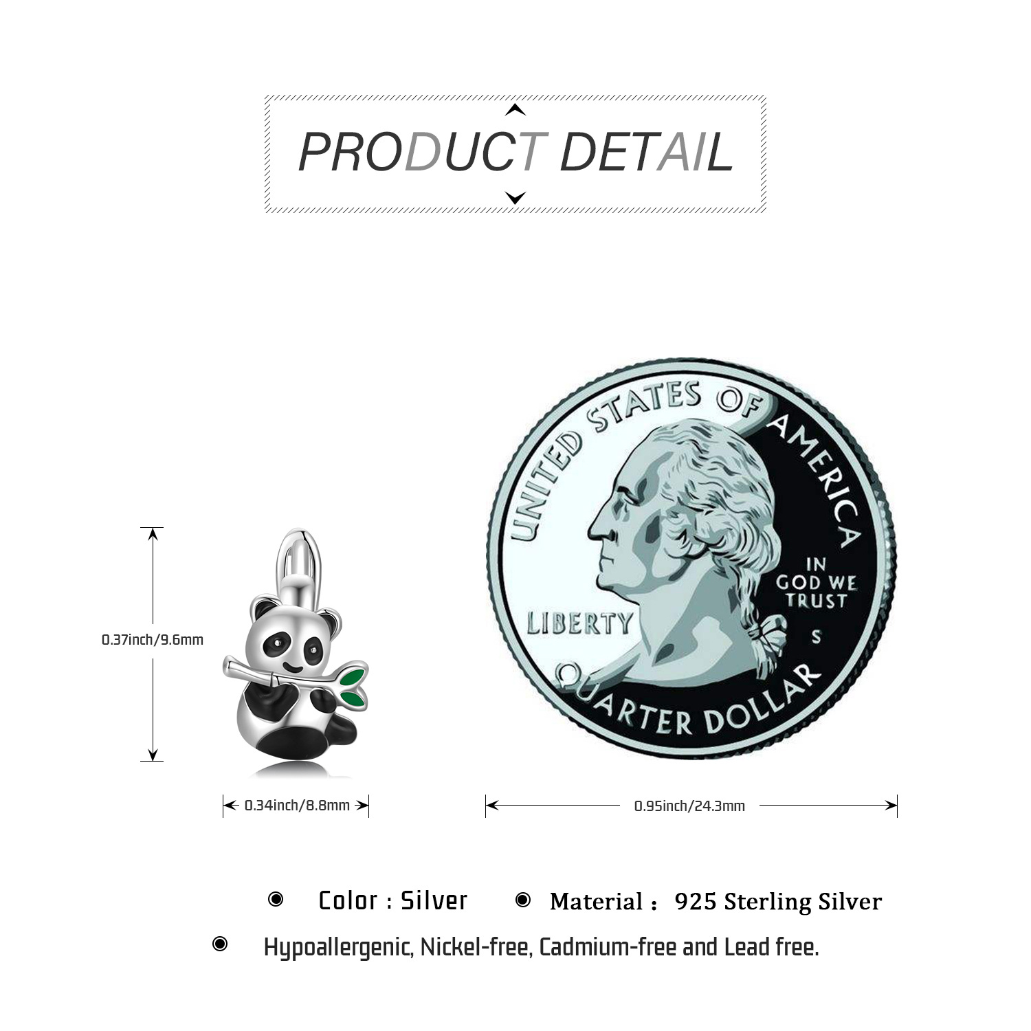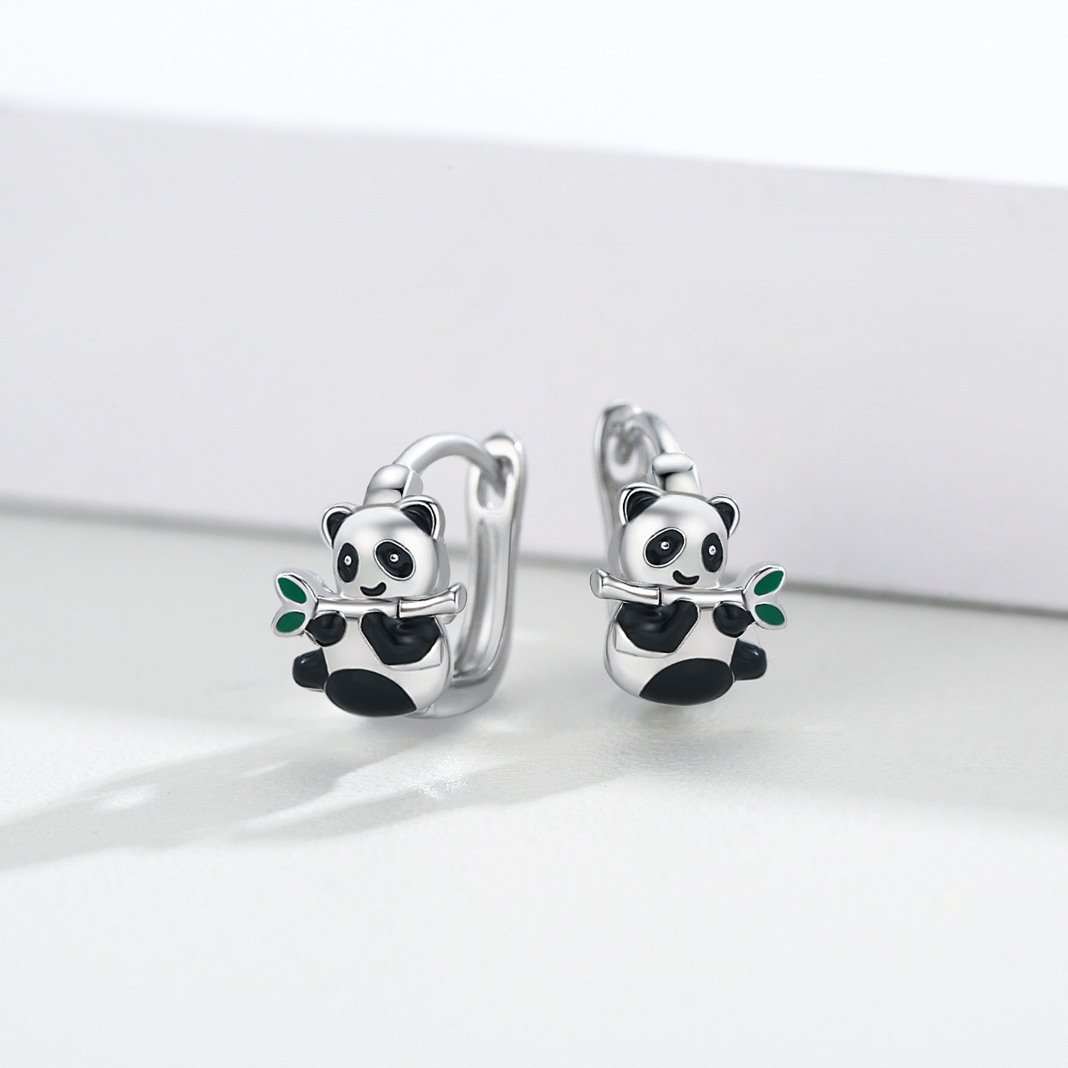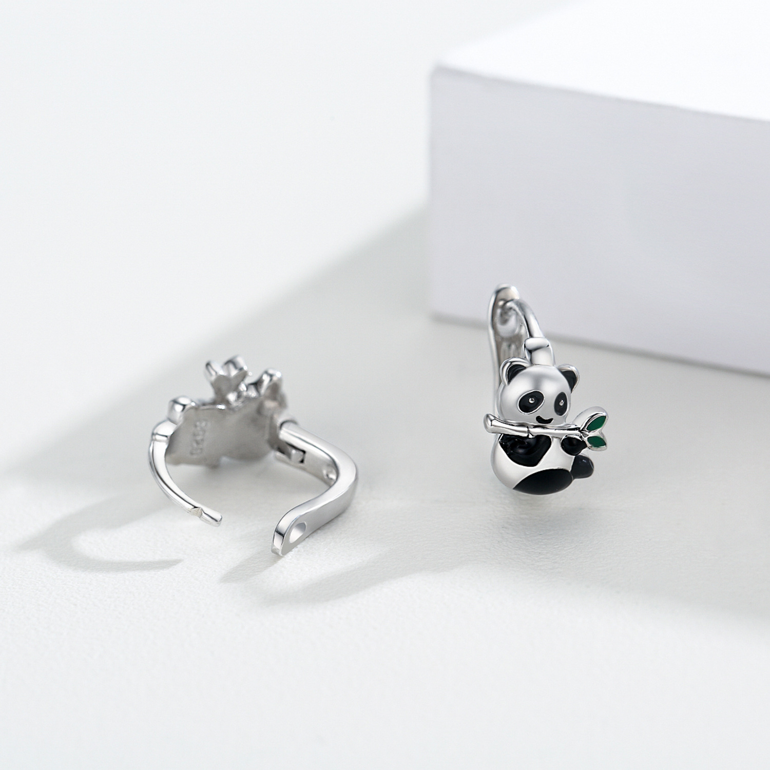 925 Sterling Silver Hypoallergenic Panda Small Animal Huggie Hoop Earrings for Sensitive Ears Jewelry
