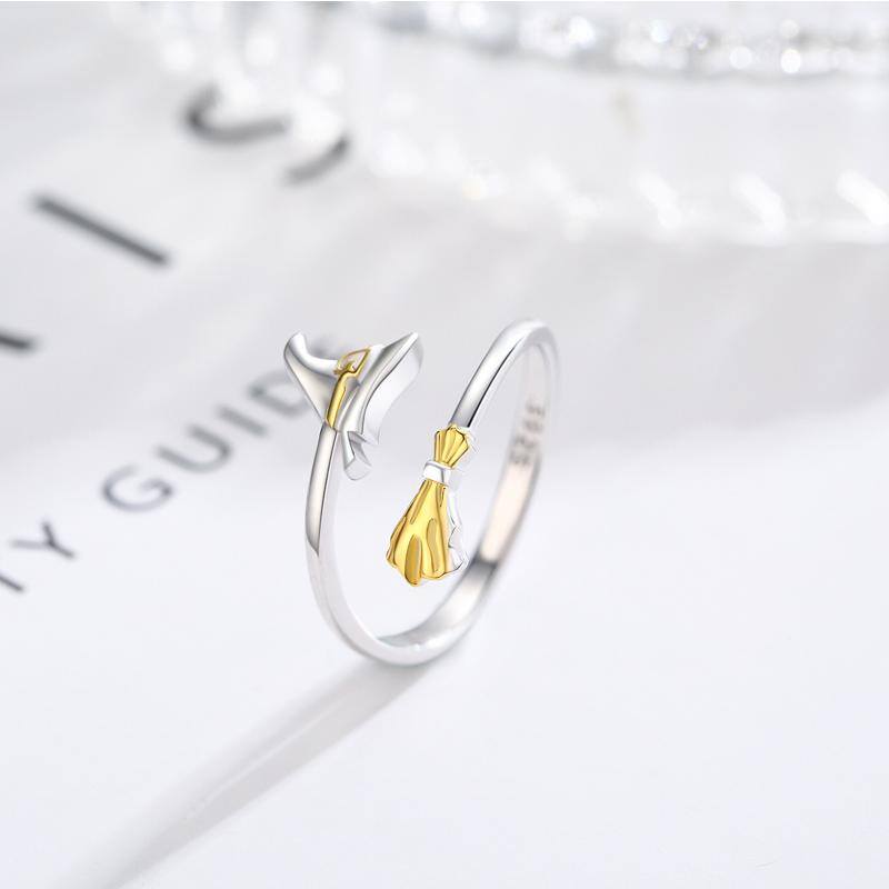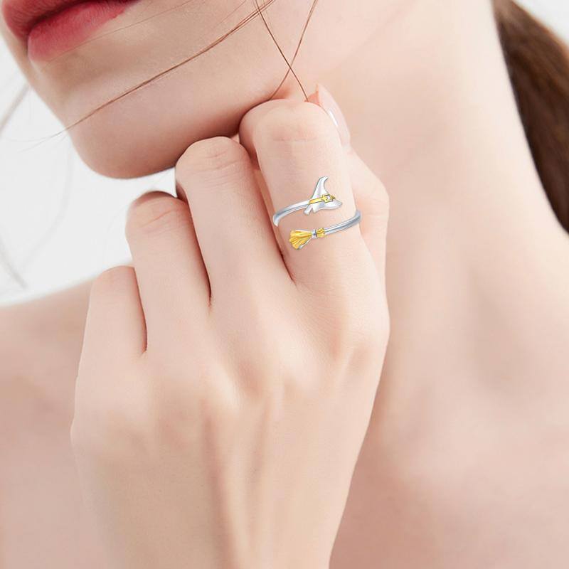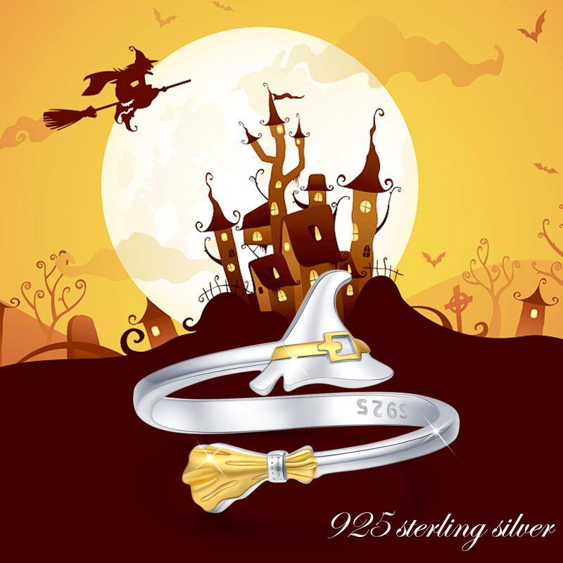 Halloween Ring 925 Sterling Silver Witch Cap Broom Adjustable Ring for Women Halloween Party Decor Open Thumb Rings