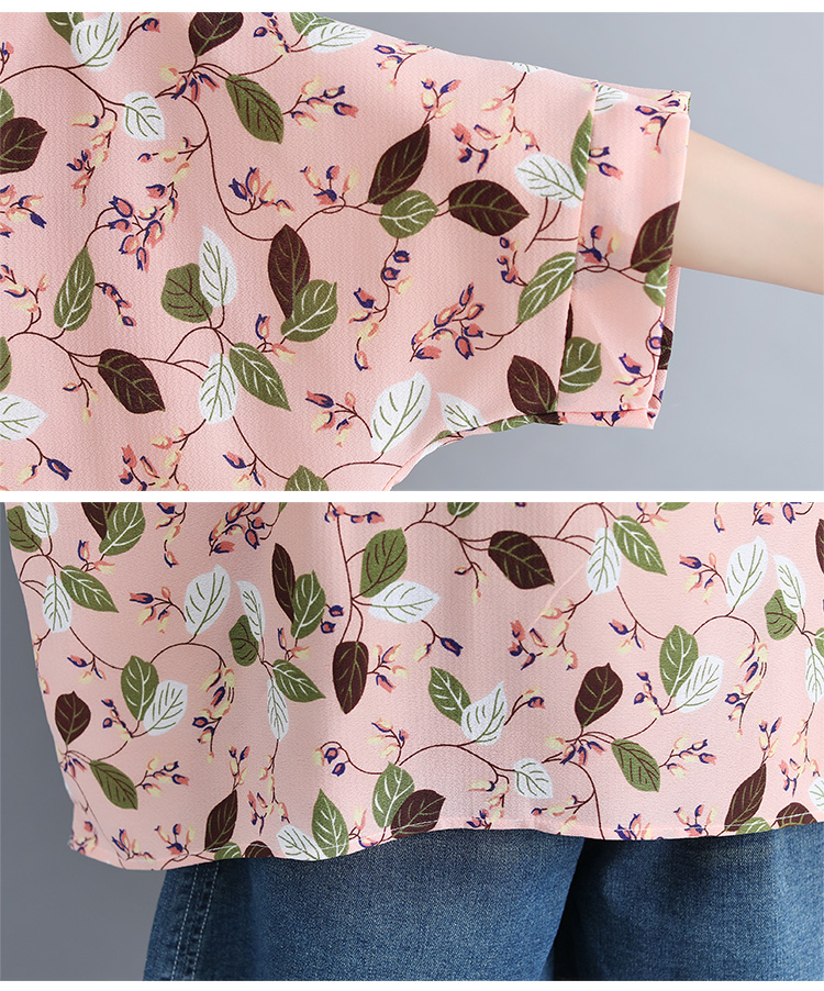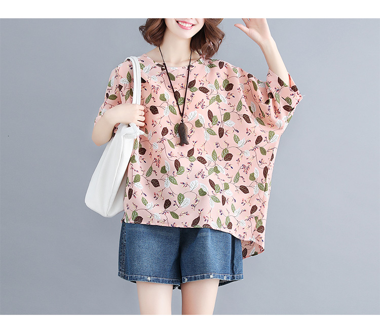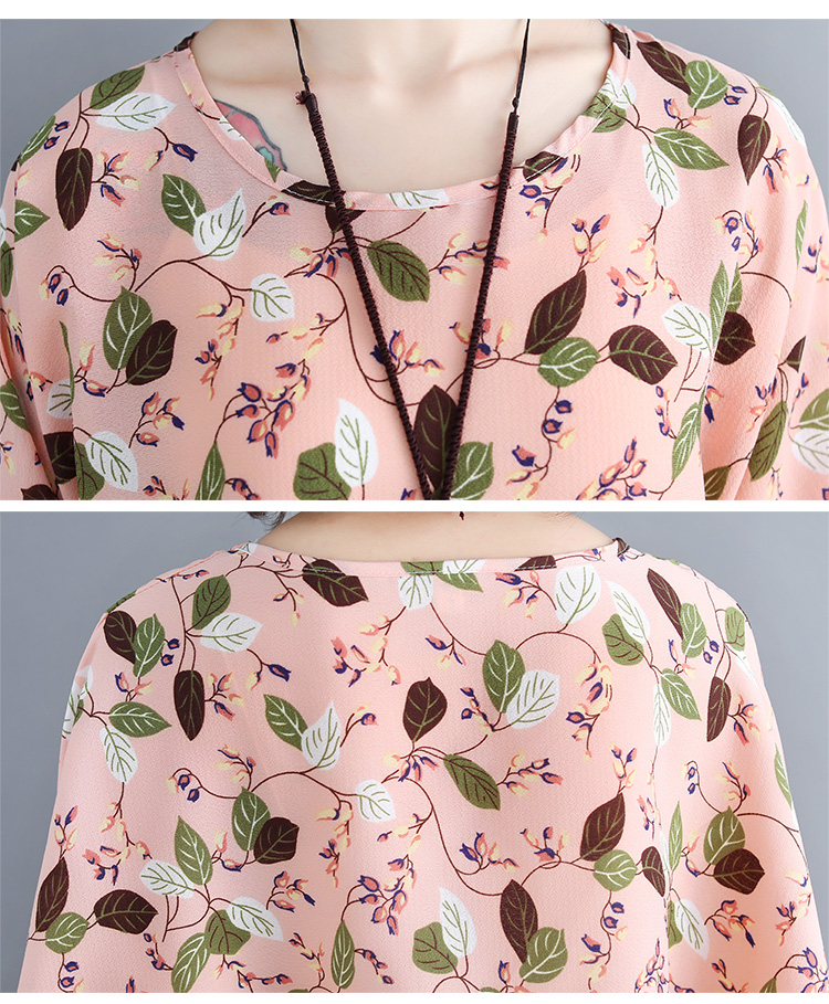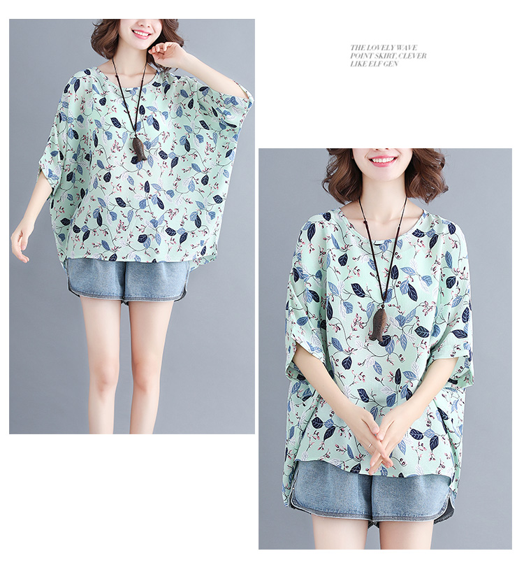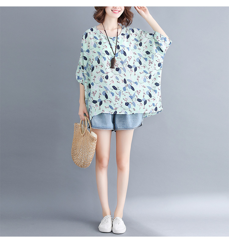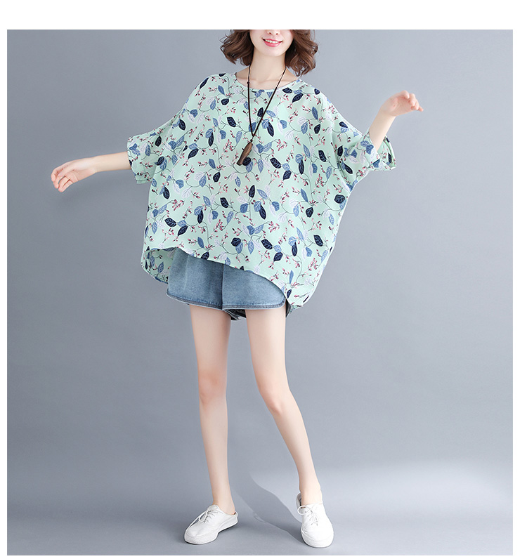 Women's loose chiffon printed bat short-sleeved T-shirt women