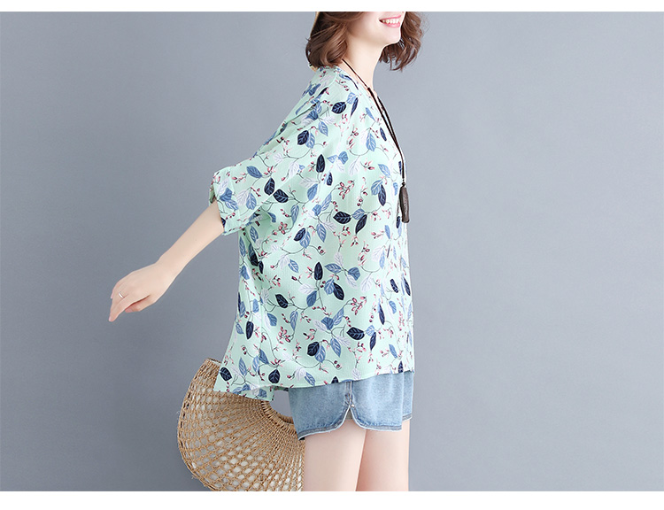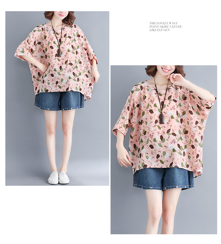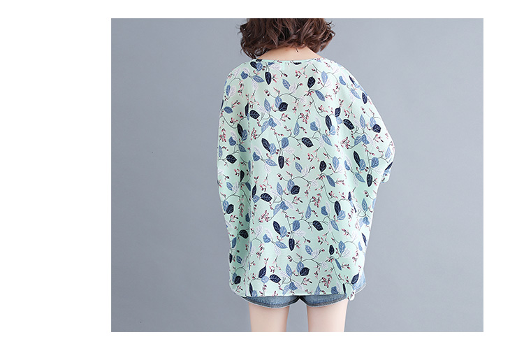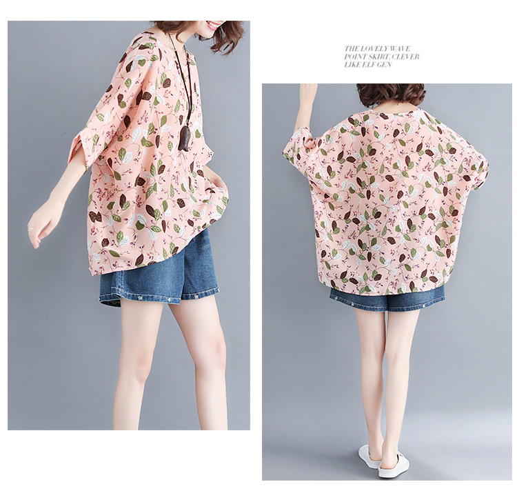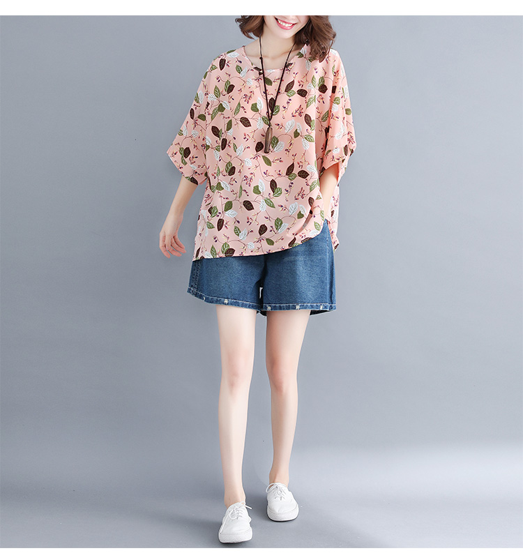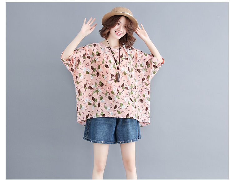 Women's loose chiffon printed bat short-sleeved T-shirt women